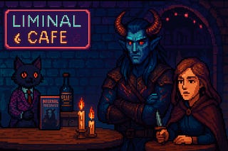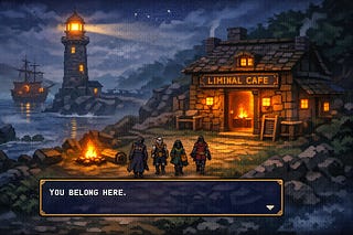 The Liminal Café’s TV doesn’t turn on so much as it wakes up.
